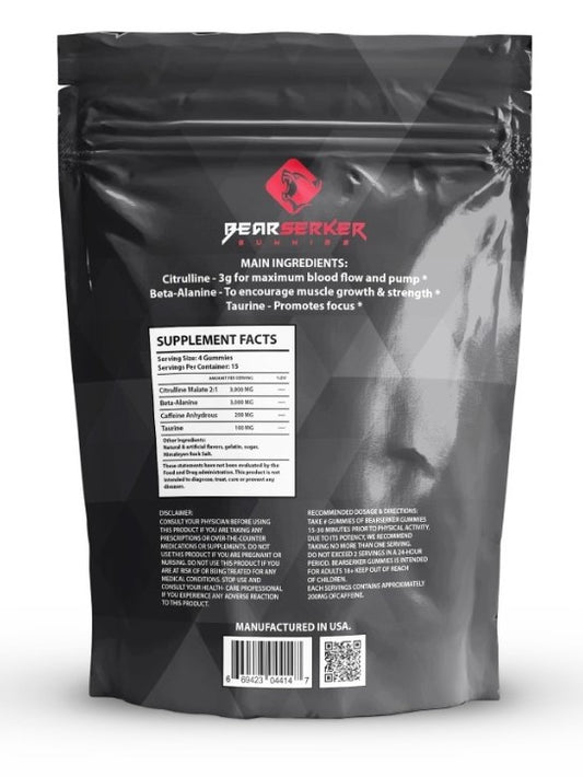 Sour Strawberry flavored pre-workout gummies (30 servings)